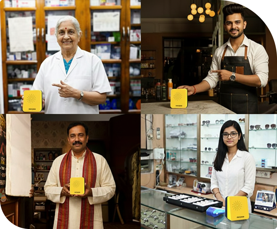 The Soundbox lets merchants hear a confirmation as soon as a payment is processed (via QR / UPI / other methods)