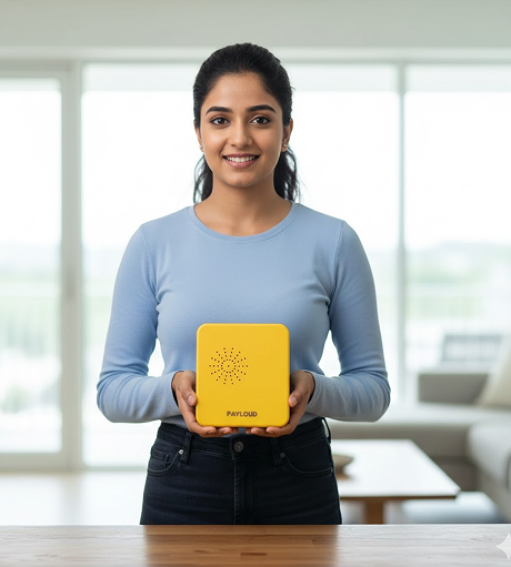 It is a voice notification machine for you. In simpler words, the PayLoud Box will alert you that the payment is complete, instead of checking apps & waiting for an SMS, cool, isn’t it? It is a small and portable speaker for your daily payment alerts.